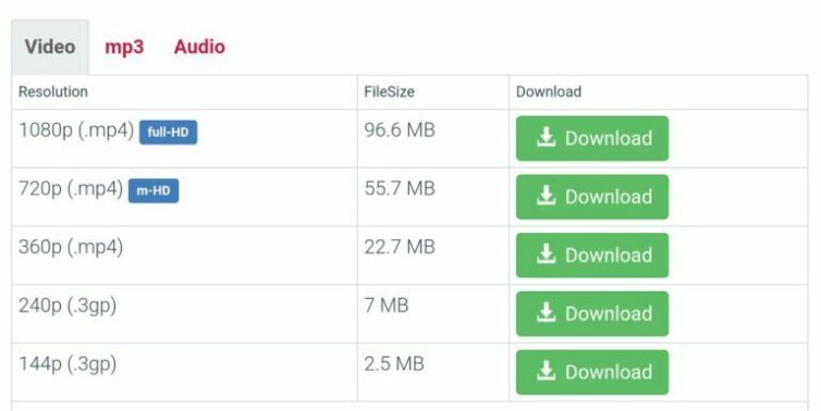 - Selanjutnya Anda akan diarahkan ke website downloader, jadi langsung saja pilih kualitas video dan format yang diinginkan lalu klik “Download”