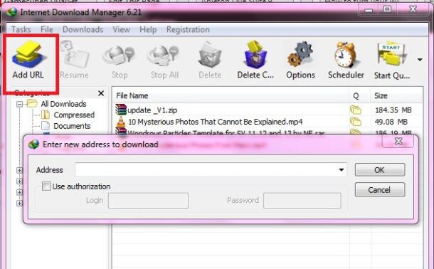 - Sekarang buka Internet Download Manager, lalu klik “Add URL” dan “Paste” link yang akan diunduh
