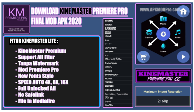 Berikut kami perjelas lagi dengan fitur-fitur yang ada disemua kinemaster Pro APK