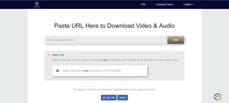 - Sekarang kunjungi Vidpaw.net dan “Paste” URL yang telah disalin di papan yang tersedia