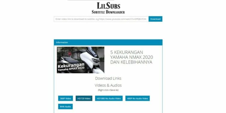 Opsi lain website downloader untuk mengunduh video Youtube adalah Lilsubs.com. Website ini bisa generate link download video dengan kualitas dan format sesuai kebutuhan. Selain itu, pengguna juga bisa mengunduh subtitle yang terdapat pada video tersebut.