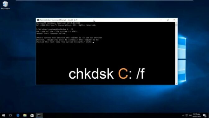 - Tuliskan perintah “chkdsk F:” (huruf F tersebut bisa diganti dengan directory drive yang ingin di scan)