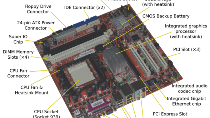 Pengertian motherboard adalah hardware komputer yang berbentuk papan sirkuit, dimana banyak kompnen elektronik yang saling berhubungan di dalamnya. Motherboard atau Mobo juga bisa diartikan sebagai papan utama berupa PCB dan memiliki chip bios alias program penggerak. Chip ini berguna untuk memberikan jalur konektor yang bisa menghubungkan akses di setiap perangkat.