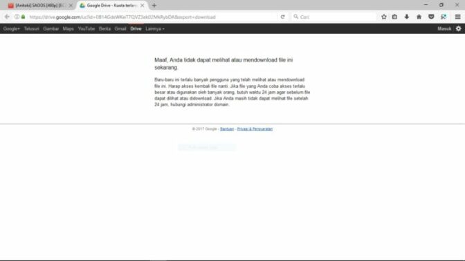 - Limit download harian sudah tercapai. Google menerapkan limit download harian untuk mencegah beban berlebihan pada sistem. Ini juga menjaga agar penyedia jasa link download seperti zippyshare dan lain sebagainya tidak bangkrut.