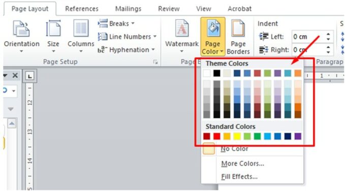 - Tekan tombol “Page Color” pada bagian “Page Backround”.