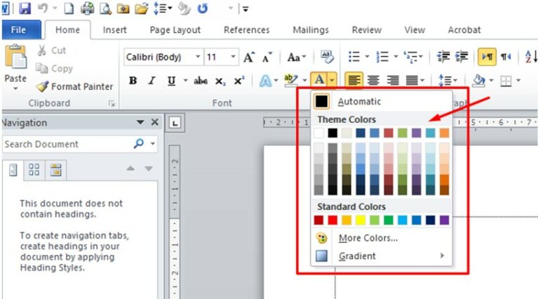 Buka dulu Microsoft Word, Setelah terbuka Microsoft Word langsung kamu pilih font color dan klik di situ, setelah diklik nantu muncul beberapa pilihan warna lihat gambar berikut ini;